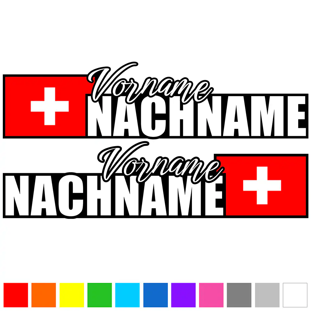 Personalisierbares Aufkleberset mit Ihrem Vor- und Nachnamen sowie einer Länderflagge Ihrer Wahl. Ideal für Helm, Motorrad, Fahrrad, Kart, RC-Modelle oder Sportausrüstung. Wetterfest, UV-beständig und in hochwertiger Optik – für einen professionellen Look auf jedem Untergrund.