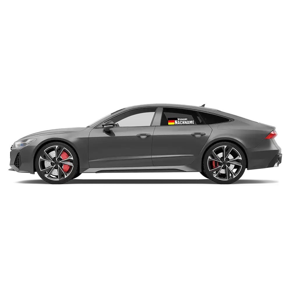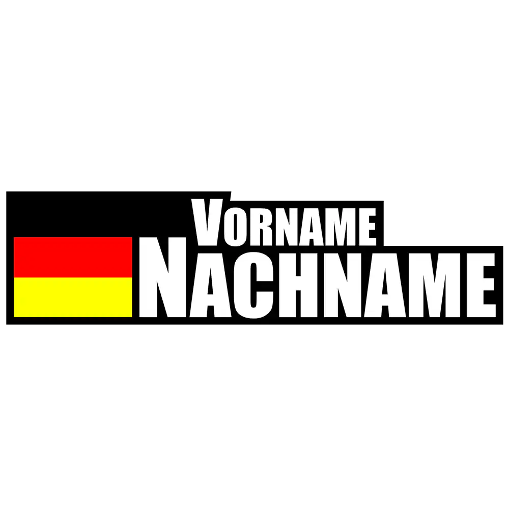 Die Flagge kannst frei konfiguriert werden, sodass jede Fahne möglich ist. Auch die Farben der Namen kannst du nach Deinen Wünschen konfigurieren, sodass sich der Aufkleber optimal an Fahrzeugdesign oder Teamfarben anpassen lässt.