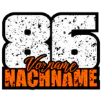 Die Kombination aus groรer Nummer, Vorname im Script-Stil und deutlich hervorgehobenem Nachnamen sorgt fรผr eine klare, gut lesbare Startnummer-Optik.